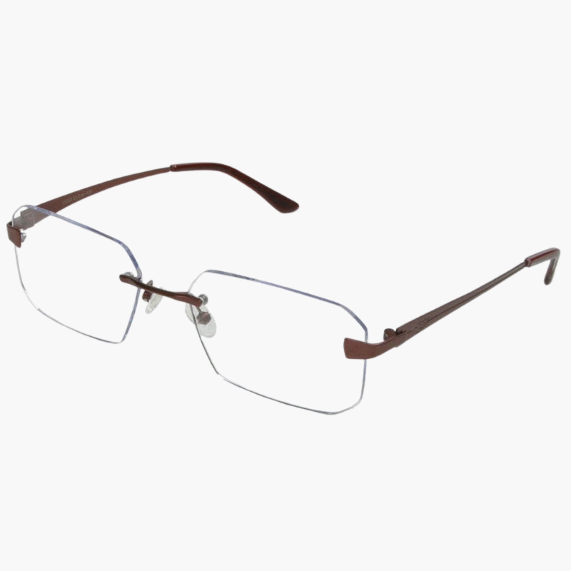 Rimless Rectangular Metal Frame with Design on Temple