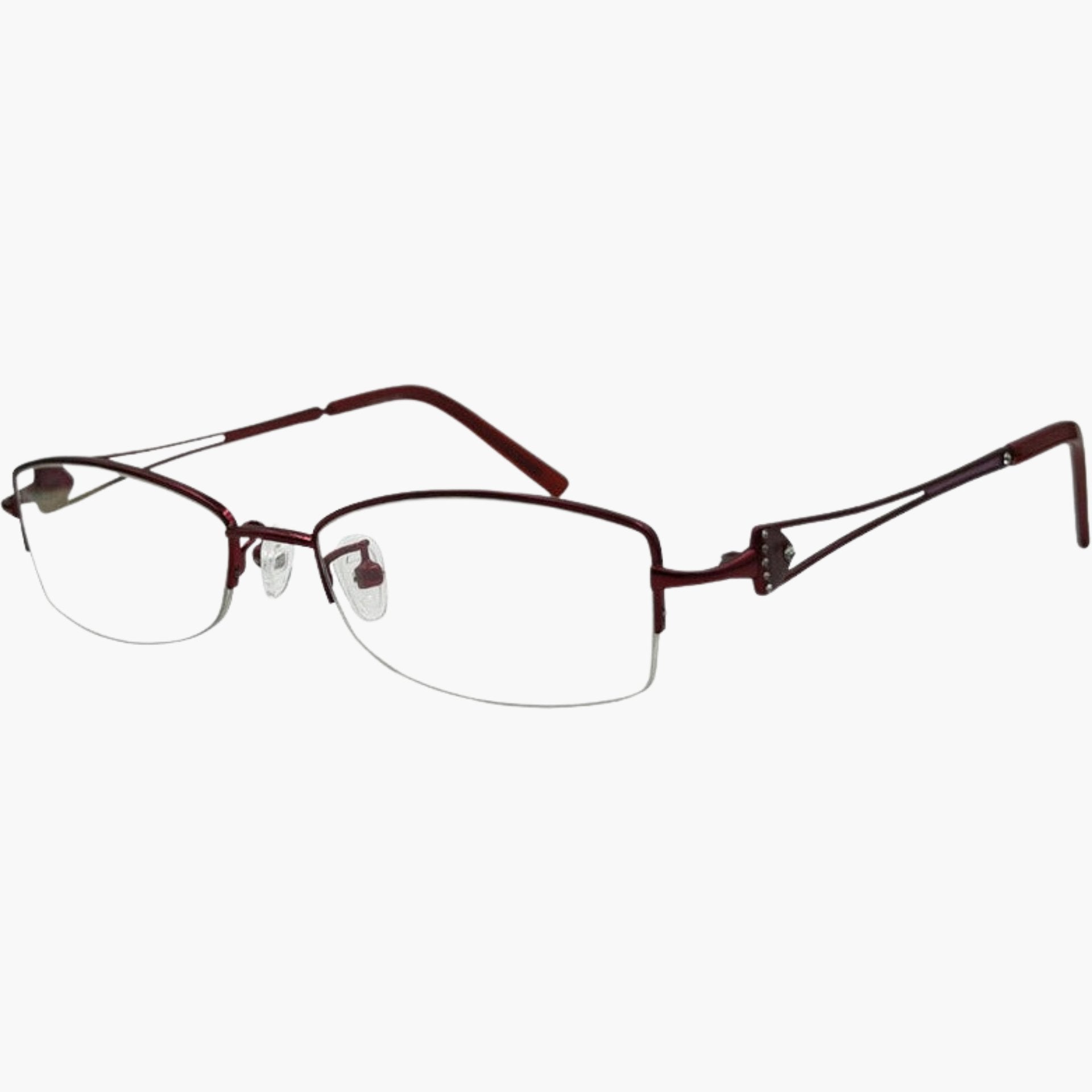 Half Rim Rectangular Metal Frames with Decorated Stones on Temple